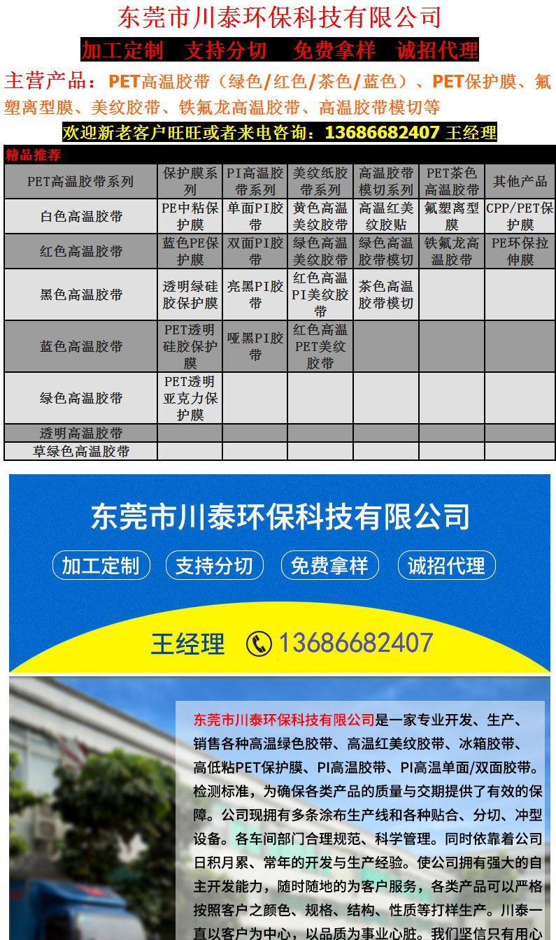 PET高温胶带 | PI高温胶带 | 保护膜 | 氟塑离型膜 | 美纹胶带 | PET玛拉胶带 | 高温胶带模切 | 铁氟龙高温胶带